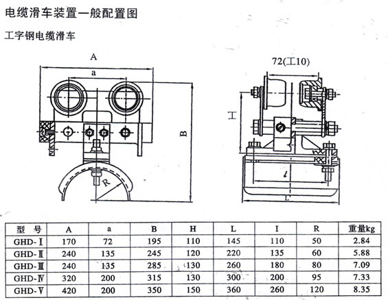 用于移動供電機械在移動中電纜的懸吊與移動,已廣泛應用于各類起重機械中。工字鋼電纜滑車該裝置具有結構堅固。移動靈活。安全可靠等優點。