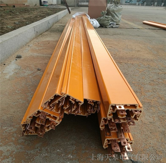 1、導管:是一根半封閉的異形管狀部件,是安全滑觸線的主體部分。其內部可根據需要嵌設2-9根裸銅排作為供電導線,各導軌間相互絕緣,并與外殼絕緣,從而保證供電的安全性。并在帶電檢修時有效地防止檢修人員觸電事故。本廠生產的導管每條長度4m,可以連接成任意需要長度,普遍導管制作成直線形,也可以按特殊需求制成圓弧形等。